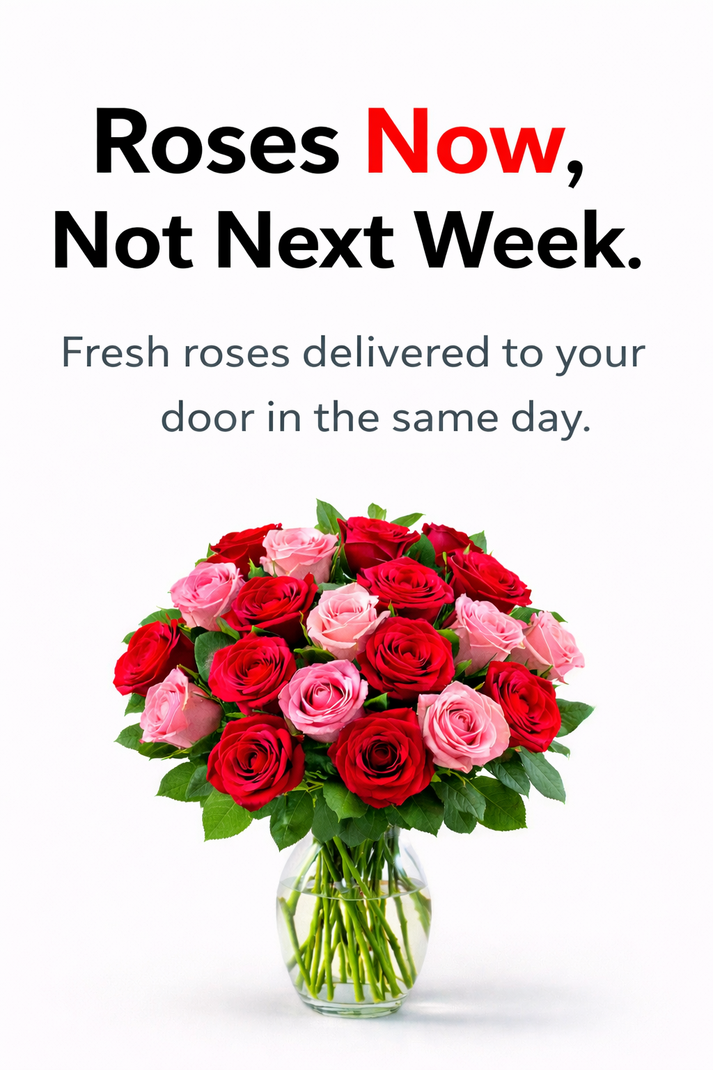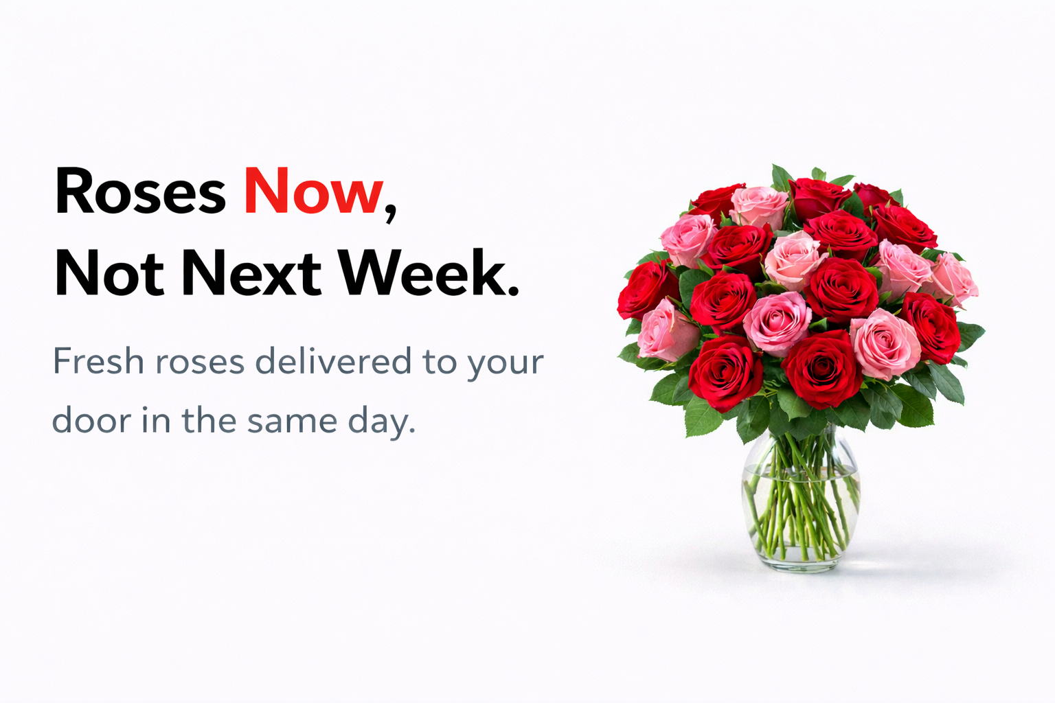 Fresh roses delivered to your door in the same day.